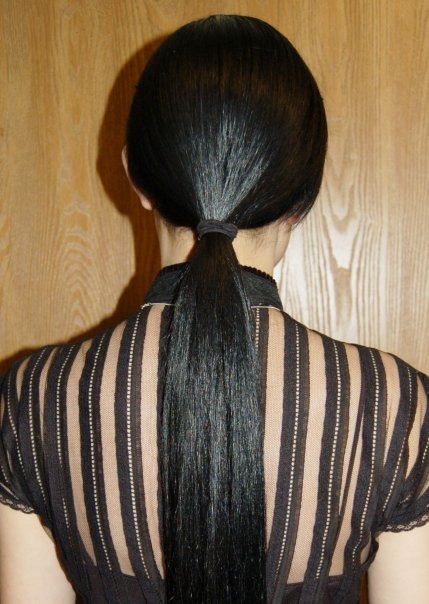 As a blond, I’ve always been fascinated by the sensuality and sultriness of the brunette stereotype. The ponytail shown above has a luxurious, almost sateen quality to it.