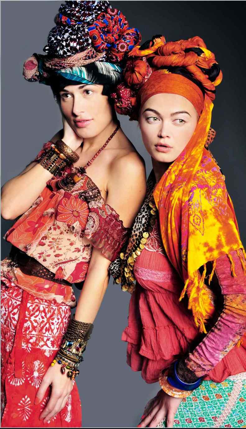 I have a penchant for beautiful scarves! My favorite silk patterned ones were purchased at flea markets in Lisbon, Santa Fe, and San Francisco. I drape them around my shoulders mostly but have never had the panache to wear them in the dramatic way shown above.