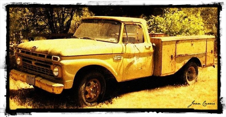 Old Yellow… 31 Sunday Jul 2011 Posted by Satin & Sand in Design, Photography, Reflections ≈ Comments Off on Old Yellow… TagsFord pickup truck, Jack Handy, old pickup truck, postaweek 2011, yellow pickup truck © Joan Currie Folks still remember the day ole Bob Riley came bouncing along that dirt road in his pickup. – Jack Handy Every time I pass this abandoned truck, I try to imagine all the places it visited in its glory days. Like Loading... Related